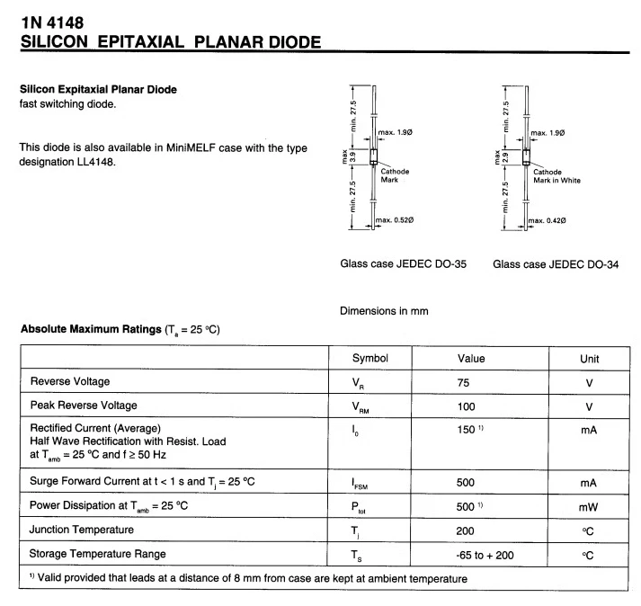 50 Uds diodos de conmutación de alta velocidad 1N4148 IN4148 DO-35 nuevo original