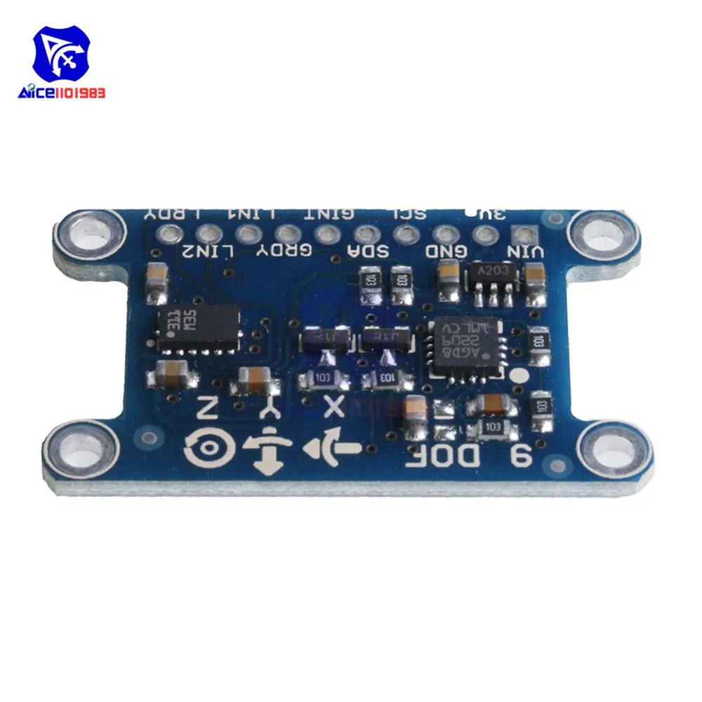 9DOF IMU Breakout board can capture nine different types of motion or orientation of the 3-axis accelerometer to obtain the relevant data magnetic orientation and angular velocity that is three-axis gyroscope + triaxial accelerometer three-axis magnetic field +
